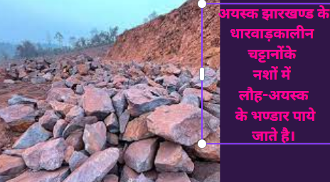 धारवाड़कालीन चट्टानों के नशों में लौह-अयस्क के भण्डार पाये जाते है। इस प्रकार की चट्टानी